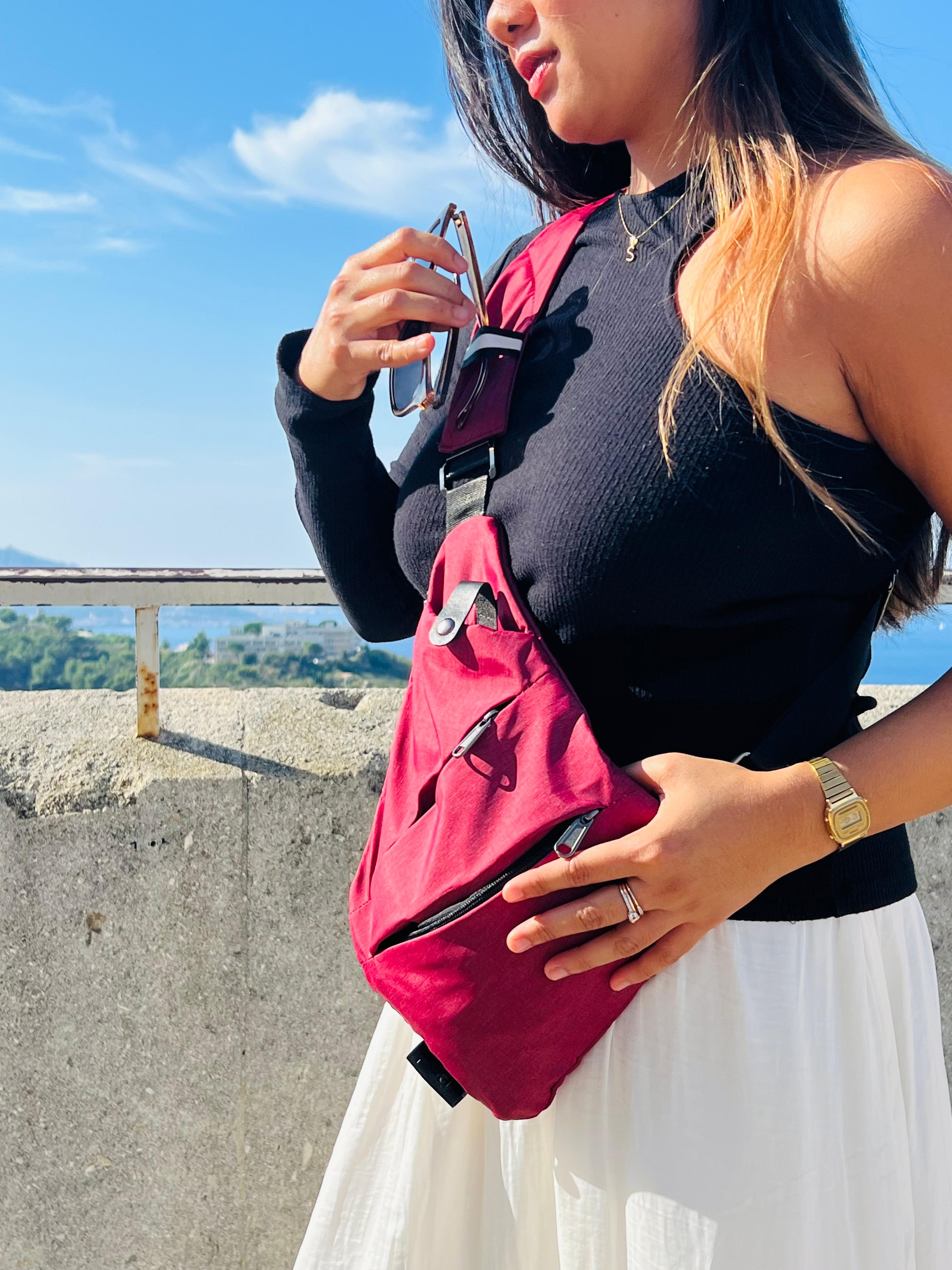 Porte-le comme tu le souhaites : devant, derrière ou autour de la taille. Tu peux facilement ajuster sa sangle pour changer de style, et le sac épousera parfaitement ton corps, quelle que soit la façon dont tu le portes.